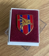 A lovely lapel pin badge in the shape and design of the association shield with Corps Colours and a Pegasus. Looks …