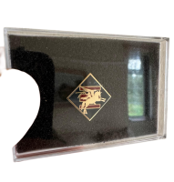 A lovely lapel pin badge in the shape and design of the Royal Engineers drop zone 'DZ' flash and an overlaying gold pegasus.